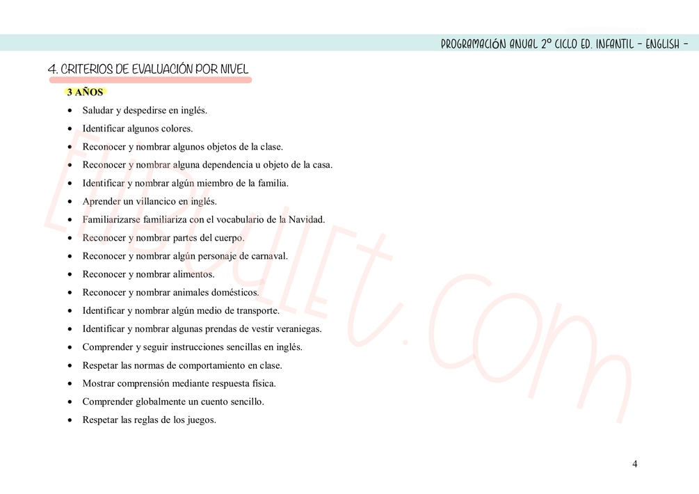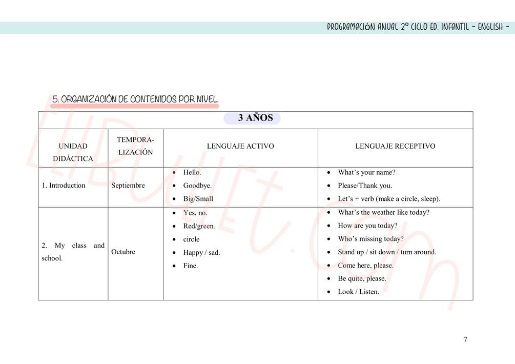 PROGRAMACIÓN ANUAL DE AULA PARA ED. INFANTIL - 🇬🇧English🇬🇧