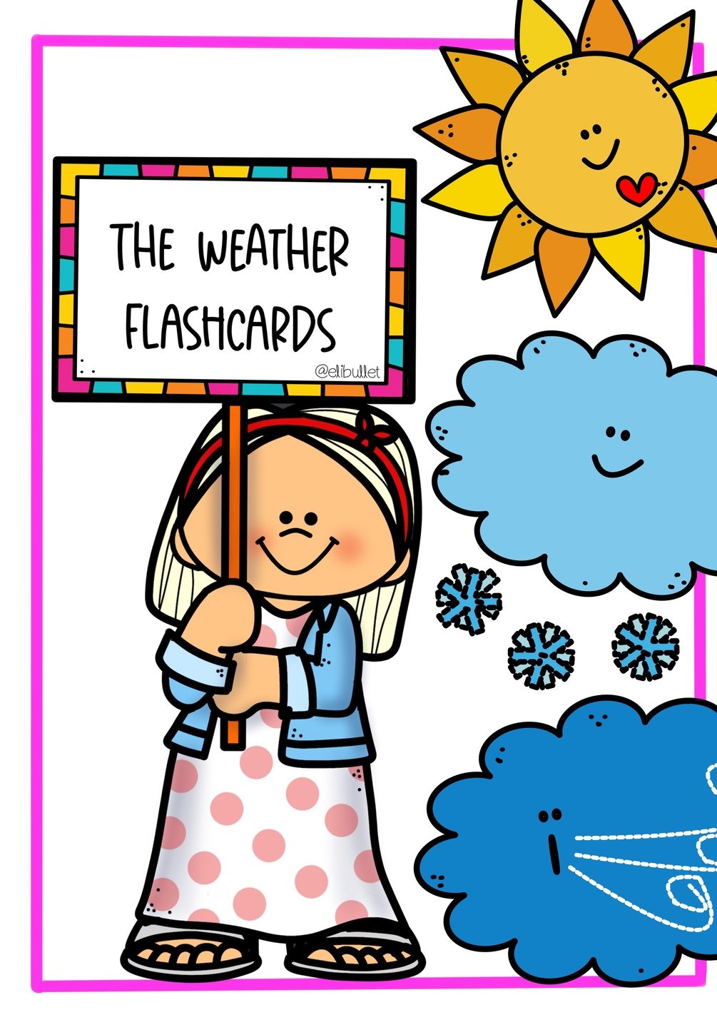 Se trata de unas coloridas flashcards para trabajar el clima.