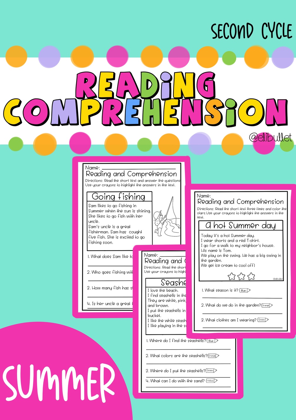 Hoy te dejo por aquí unas fichas ideales para trabajar la comprensión lectora en 🇬🇧 Centrada en el verano!,